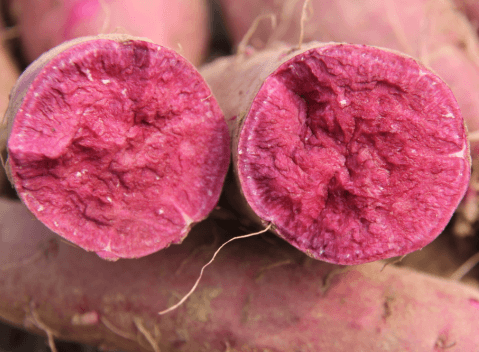 該品種是目前國(guó)內(nèi)少有的綜合性狀更有的紫肉薯,高抗根腐病,抗莖線蟲(chóng)病,較抗黑斑病。薯皮紫色,薯肉深紫色,色澤均勻。