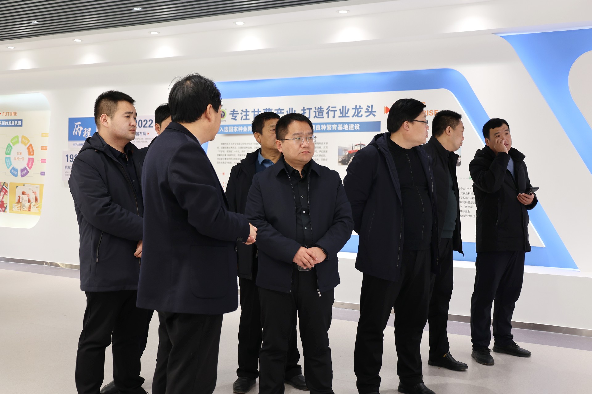 2023年2月13日下午,石家莊市贊皇縣張楞鄉(xiāng)人大主席申興波帶領(lǐng)張楞村、葛溝村、下徐樂村、南竹村、北延莊村黨支部書記一行7人到邯鄲市禾下土種業(yè)有限公司參觀考察。學(xué)習(xí)禾下土在發(fā)展紅薯產(chǎn)業(yè)方面的先進(jìn)經(jīng)驗(yàn)和做法,加強(qiáng)產(chǎn)業(yè)合作,推進(jìn)基地建設(shè)。一行先后參觀禾下土甘薯綜合展廳、脫毒組培中心和組培苗擴(kuò)繁暖棚等,詳細(xì)了解禾下土在甘薯種業(yè)領(lǐng)域的創(chuàng)新發(fā)展情況,并進(jìn)行了深入的座談交流。