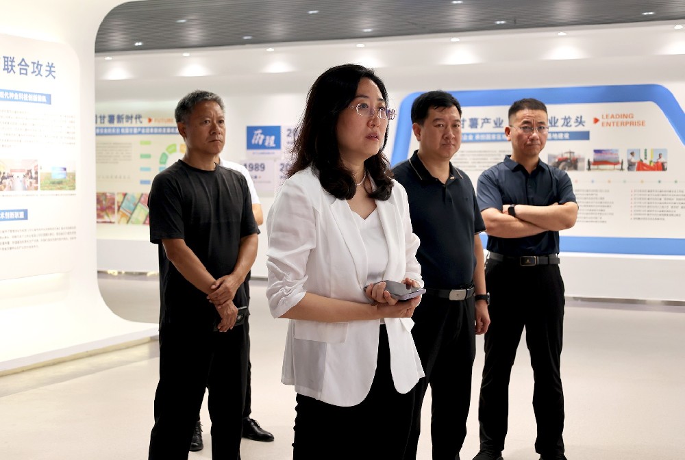 2024年7月21日,邯鄲市農(nóng)業(yè)農(nóng)村局黨組書記、局長王常智一行蒞臨禾下土調(diào)研。調(diào)研組一行參觀了綜合展廳,聽取企業(yè)總經(jīng)理崔伏喜對甘薯新品種選育、脫毒組培、基地規(guī)模的情況介紹,了解了禾下土在脫毒甘薯種業(yè)領(lǐng)域的創(chuàng)新發(fā)展成果。磁縣農(nóng)業(yè)農(nóng)村局黨組書記王國棟、副局長靳合成、黨委委員武鵬飛陪同調(diào)研。