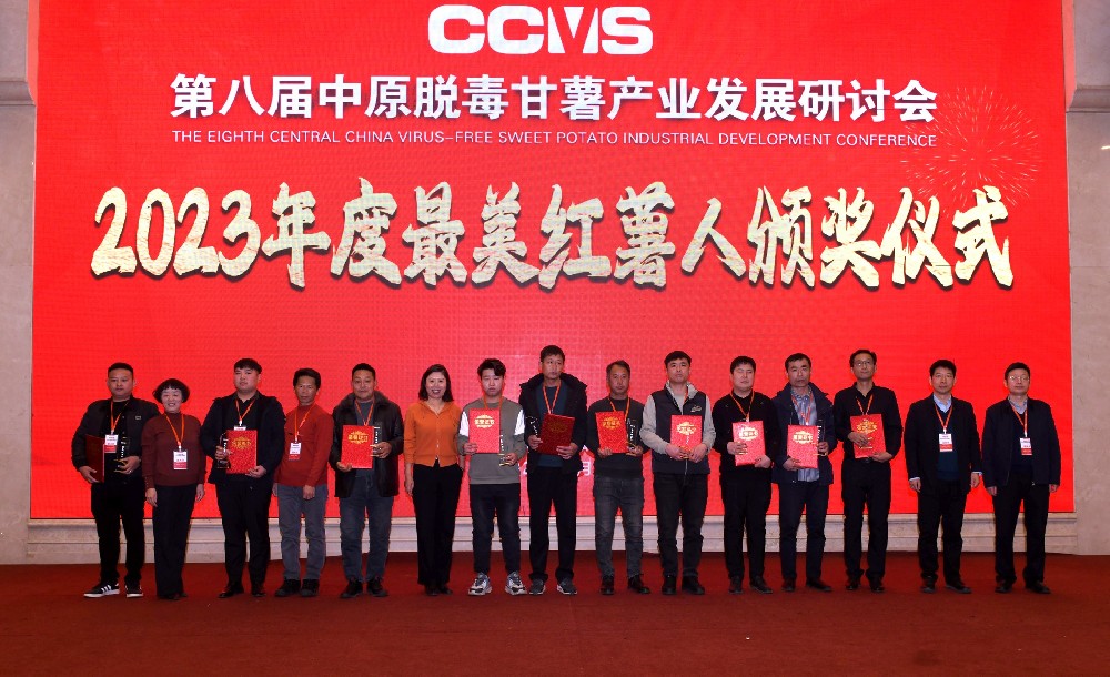 2024年1月7日,“2023年度最美紅薯人”正式揭曉。新疆烏蘇趙勝利、河南開封朱云龍、廣東湛江駱建光、河北唐山王志剛、山東臨沂王朝良、天津?qū)幒有旌2?、遼寧綏中冀增武、河南新鄉(xiāng)袁增堯、河北廊坊常滿良、黑龍江省牡丹江任玉建榮獲“2023年度最美紅薯人”稱號。國家甘薯產(chǎn)業(yè)技術(shù)體系副首席科學家、徐州市農(nóng)業(yè)科學院副院長曹清河、國家甘薯產(chǎn)業(yè)技術(shù)體系病蟲害防控研究室主任、河南省農(nóng)業(yè)科學院植物保護研究所副所長張振臣、廣東省普寧市農(nóng)業(yè)科學研究所副所長馮順紅、國家甘薯產(chǎn)業(yè)技術(shù)體系崗位專家、山東省農(nóng)科院作物研究所甘薯研究室主任王慶美、邯鄲市禾下土種業(yè)有限公司董事長王玉文為“2023年度最美紅薯人”進行了現(xiàn)場頒獎。