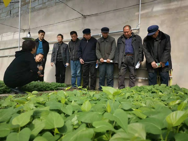 2019年3月6日,邯鄲大名甘薯種植大戶一行10余人到禾下土脫毒甘薯種薯種苗基地現(xiàn)場(chǎng)參觀考察,邯鄲市禾下土種業(yè)有限公司基地負(fù)責(zé)人崔勇平陪同參觀。考察團(tuán)先后參觀了禾下土試管苗擴(kuò)繁基地和600畝標(biāo)準(zhǔn)化脫毒種苗基地,詳細(xì)了解禾下土在科研育種、脫毒組培、規(guī)模繁育、科技成果轉(zhuǎn)換等方面的生產(chǎn)經(jīng)營(yíng)情況,并圍繞脫毒甘薯種苗繁育、技術(shù)等方面進(jìn)行了深入溝通。