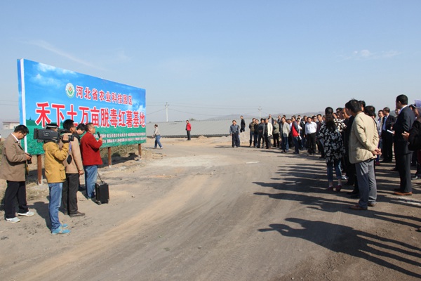 2015年10月31日上午磁縣農(nóng)牧局新型職業(yè)農(nóng)民培訓班學員到邯鄲市禾下土種業(yè)有限公司脫毒甘薯育種育苗基地參觀學習。現(xiàn)場采收脫毒紅薯脫毒紅薯采收稱重學員對在基地現(xiàn)場采收的脫毒紅薯單株產(chǎn)量8斤,畝產(chǎn)過萬斤的高產(chǎn)表示驚訝,沒想到紅薯脫毒后能有這么高的產(chǎn)量。禾下土公司董事長向培訓學員介紹了禾下土脫毒甘薯育種育苗基地概況、現(xiàn)有的脫毒甘薯品種、脫毒甘薯的6大優(yōu)勢以及營銷網(wǎng)絡。董事長在會議室向?qū)W員培訓 磁縣農(nóng)牧局新型職業(yè)農(nóng)民培訓班學員在禾下土基地合影留念
