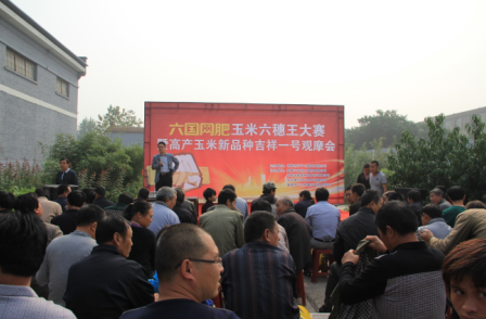 2014年9月20日,由邯鄲市禾下土種業(yè)有限公司主辦,安徽六國(guó)化工股份有限公司、甘肅省敦煌種業(yè)股份有限公司、河北緣生農(nóng)業(yè)開(kāi)發(fā)有限公司、磁縣禾下土種植業(yè)專(zhuān)業(yè)合作社協(xié)辦的六國(guó)網(wǎng)肥——吉祥一號(hào)玉米六穗王大賽,在禾下土公司舉辦,來(lái)自禾下土公司的農(nóng)戶(hù)、種植大戶(hù)、經(jīng)銷(xiāo)商150余人,參與了該活動(dòng),評(píng)選出15位農(nóng)戶(hù)獲得金銀條獎(jiǎng)項(xiàng)。敦煌種業(yè)李福興副總經(jīng)理、六國(guó)化工河北省銷(xiāo)區(qū)指揮長(zhǎng)靳長(zhǎng)富、禾下土公司崔伏喜經(jīng)理為獲獎(jiǎng)農(nóng)戶(hù)頒獎(jiǎng)并合影留念。