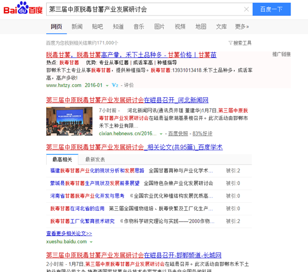 2016年1月6日-7日,由邯鄲市禾下土種業(yè)有限公司主辦的第三屆中原脫毒甘薯產(chǎn)業(yè)發(fā)展研討會(huì)在河北磁縣溢泉湖度假村盛大召開,來自全國(guó)各地的甘薯專家、育苗企業(yè)、種植大戶、收購商、深加工企業(yè)、農(nóng)機(jī)企業(yè)、農(nóng)資企業(yè)代表等180余人相聚磁縣,共同探討中國(guó)甘薯產(chǎn)業(yè)的發(fā)展與未來。會(huì)議得到各大媒體的權(quán)威關(guān)注。各大媒體競(jìng)相報(bào)道關(guān)注河北新聞網(wǎng)第一時(shí)間發(fā)布會(huì)議信息長(zhǎng)城網(wǎng)聚焦關(guān)注邯鄲日?qǐng)?bào)聚焦關(guān)注中國(guó)地瓜網(wǎng)聚焦關(guān)注