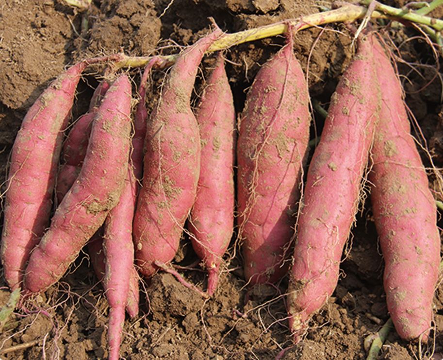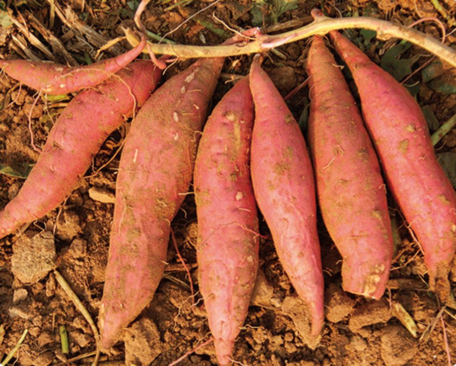 濟(jì)薯26① 特征特性:該品種屬于優(yōu)質(zhì)高端高產(chǎn)高效食用型紅薯新品種,紅皮黃瓤,結(jié)薯集中,單株結(jié)薯4—5個(gè);抗莖線蟲病、根腐病、蔓割病和黑斑病,耐貯性好。特別適合烘烤和蒸煮。薯形長(zhǎng)紡錘形,結(jié)薯整齊集中,商品率高達(dá)95%。② 品種來源:該品種是山東省農(nóng)業(yè)科學(xué)院作物研究所選育,2014年3月通過國(guó)家鑒定。③ 產(chǎn)量表現(xiàn):春薯區(qū)平均單產(chǎn)3500公斤以上,夏薯區(qū)平均單產(chǎn)2500公斤以上。2012年國(guó)家北方區(qū)試鮮薯單產(chǎn)第一,2013年國(guó)家甘薯產(chǎn)業(yè)技術(shù)體系高產(chǎn)競(jìng)賽平均單產(chǎn)3700公斤。④ 栽培要點(diǎn):⑴培育壯苗,采用秋薯留種。⑵施足基肥,早追苗肥,重施"夾邊肥",后期看莖葉生長(zhǎng)情況酌情追施"裂縫肥"或根外追肥。⑶適期早插合理密植。春薯每畝植3000株,夏薯每畝植3500株⑷適應(yīng)性廣,耐旱耐澇耐肥,管理省工,莖節(jié)不定根少...