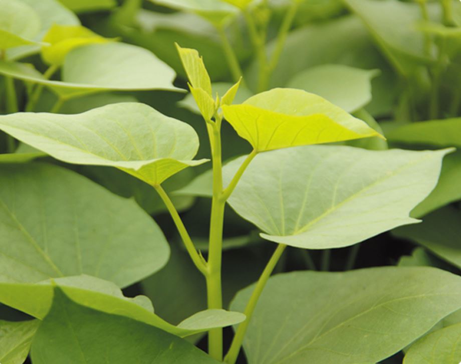 臺農(nóng)71① 特征特性:該品種莖葉嫩綠,葉心形,茸毛少,口感鮮嫩滑爽,既可炒食又可涼拌,營養(yǎng)豐富。菜用品質(zhì)好過空心菜,短蔓半直立性,基部分枝多達十幾個,莖葉再生能力強,薯皮白色,肉淡黃色,塊根產(chǎn)量較低,生長期間極少發(fā)生病蟲害,是天然無污染的綠色蔬菜。② 品種來源:該品種由臺灣引進的優(yōu)質(zhì)蔓尖蔬菜甘薯新品種,又稱綠茸菜,蔓尖肥嫩,口感清香,營養(yǎng)豐富,是補充夏秋季節(jié)葉菜淡季的新型、優(yōu)質(zhì)無公害綠葉菜。③ 栽培要點:1、選適宜地塊,整地施肥。選地勢較高、排灌方便、土地平整、肥力中等、土質(zhì)疏松的田塊或岸地。結(jié)合整地每667㎡施有機肥菜餅50㎏,復(fù)合肥25㎏作基肥。壟寬1m左右,每壟挖兩行穴,行株距40×30㎝,溝20~25㎝。2、適時移栽。薯苗扦插一般宜安排在5月1日前完成。適當提前可提早上市時間。密度為3500株/667...